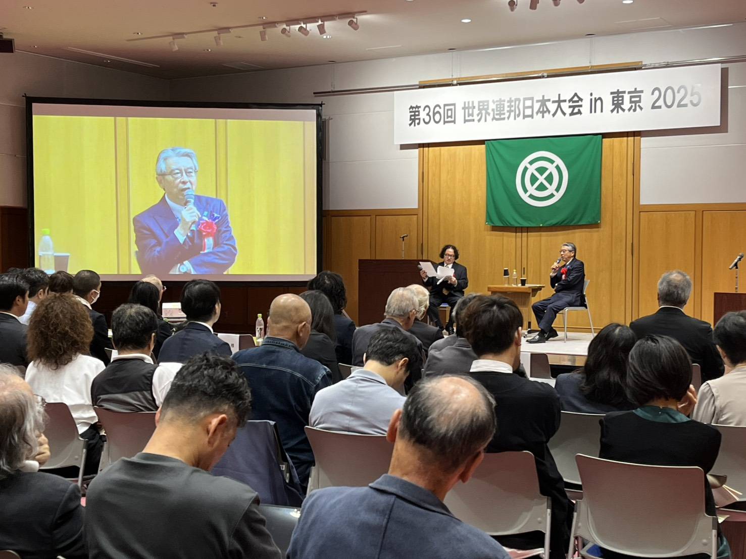 2025年10月5日、当会顧問・木戸寛孝氏が主催する「第36回 世界連邦日本大会 in 東京2025」が開催され、当会からは高瀬代表、泊理事、春日理事、九門理事、桂理事が参加いたしました。