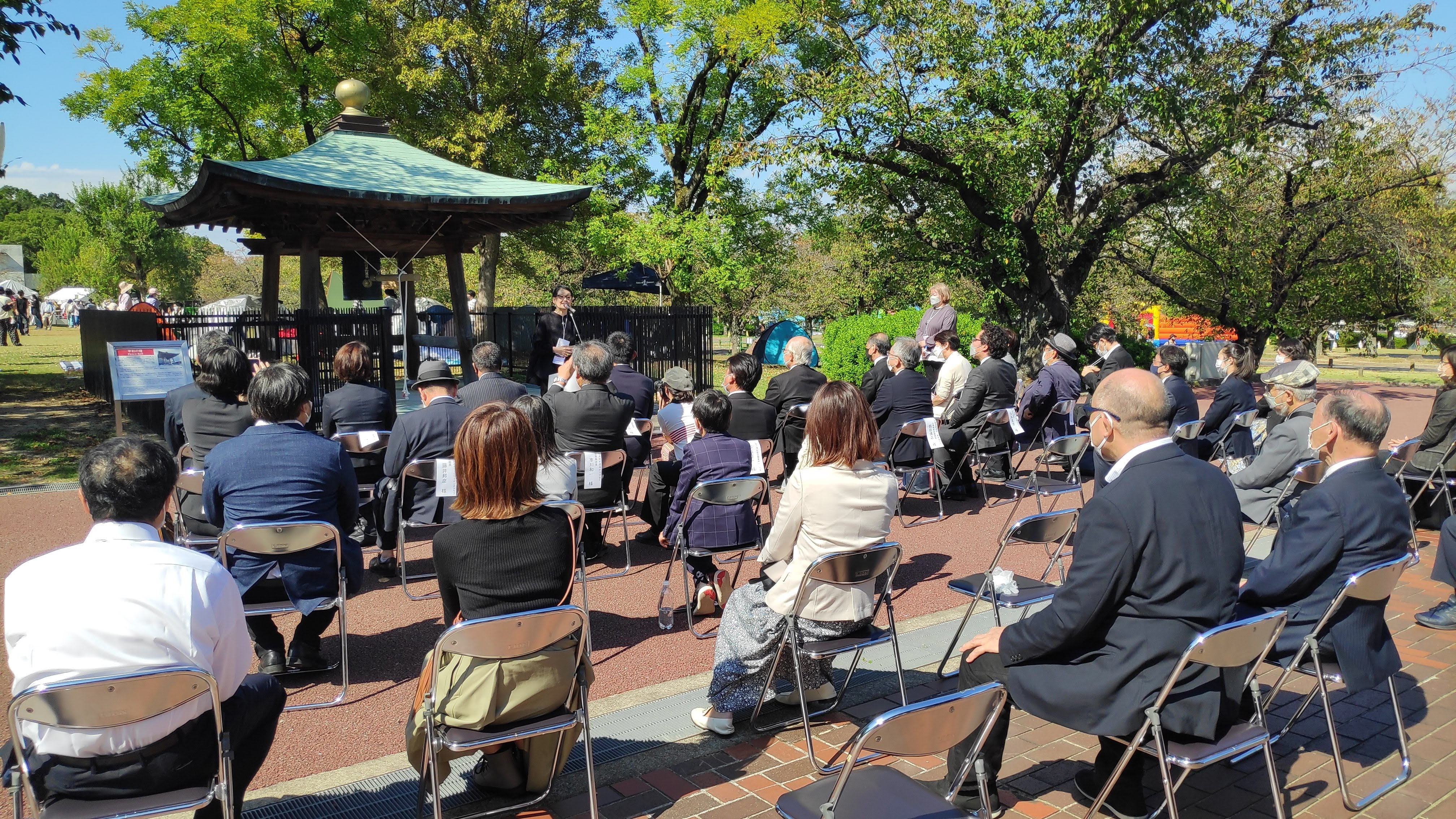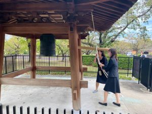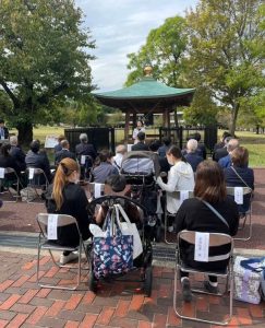 大阪万博記念公園「平和の鐘」の前で午前11時から鐘打式典を行います。