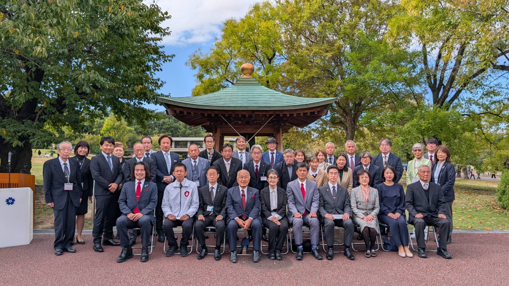 高瀨聖子代表の挨拶のあと、元衆議院副議長の中野寛成様のご祝辞、衆議院議員奥下剛光様、大阪府知事吉村洋文様のご祝辞の代読、関西担当特命全権大使三澤康様のご祝辞、吹田市長後藤圭二様のご祝辞の代読、大阪府議会議員の杉江友介様、石川たえ様、大竹いずみ様のご祝辞、大阪府教育長水野達朗様のご祝辞の代読、大阪万博記念公園事務所の濱田雄一郎所長様よりご祝辞を頂きました。また中川千代治の出身地の宇和島市長岡原文彰様からのご祝辞の披露、元衆議院議員の左藤章様、とかしきなおみ様の祝辞が披露されました。ご祝辞では戦後80年となる中、皆様今の不穏な世界情勢を心配し、世界平和を願っておられました。